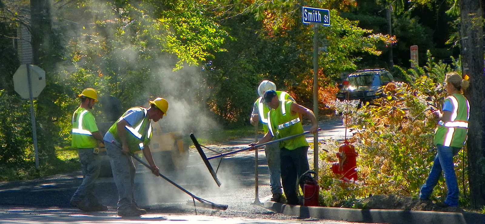 "Work" resumed on the town's Triangle Street road project, albeit s-l-o-w-l-y as the International Union of Operating Engineers Local Union 98 are still on strike, and they are pretty much the skilled heavy equipment operators.